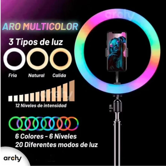 ARO DE LUZ LED RGB 10 PULG CON TRIPIE 2M